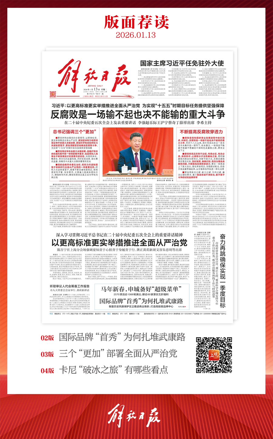 早上好!上观新闻『早读』来啦!2026年1月13日 星期二 农历十一月廿五上海晴到多云,5~14℃
